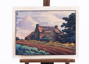 Charles de KERGARIOU dit KERGA (1899-1956) La ferme au four Encre et aquarelle sur papier Signée en haut à gauche du monogramme "Kga", dédicacée et contresignée au crayon : "à monsieur et madame VUIBERT, bien sincères souvenirs, KERGA" Petites rousseurs dans les marges. 27 x 35 cm On connaît notamment un bois gravé de Kerga portant une signature similaire. Nous remercions M. Etienne de Kergariou pour ses informations.
