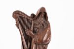 Alfred ELY-MONBET (1879-1915) St. Hervé, Tad ar Varzed. Importante sculpture en bois de taille directe Titrée, signée et datée sur le socle : "Mr. et Mm. ELY-MONBET, CAUREL, 1915" Au nom des dédicataires : "A Mr. et Mm. DELISSE" Au dos une petite plaque en laiton de l'atelier mentionne : "Art breton, tout le mobilier, A. Ely-Monbet, sculpteur, atelier-école, St. Guénolé, Caurel (C. d. N.)" Haut. 52 cm - Larg. 16 cm - Prof. 9cm Alfred Edy-Monbet et son épouse ont ouvert en 1906 l'atelier Saint-Guénolé à Caurel (au sud des Côtes-d'Armor, près de Guerlédan). L'artiste, impliqué dans l'Union Régionaliste Bretonne, travaille déjà à une vision nouvelle de l'art breton, par un allègement des formes, influencé par l'Art Nouveau, quelques années avant la création des Seiz Breur, dont il est parfois considéré comme l'un des prédécesseurs. Il meurt à la guerre en 1915 (cette statue de Saint-Hervé est l'une de ses dernières productions). Saint-Hervé est un saint breton, ermite aveugle, joueur de harpe aux longs doigts.