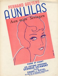 "A un lilas" (1933). Partition pour piano et chant, datée et signée "Emair" [MR] dans la planche. Partition dédiée "à Mademoiselle Marguerite Bardol". Brux., Edit. modernes, s.d. (1933), dim. : 35 x 27 cm. Zincographie tirée en rose et bleu (Schwilden, 49b).