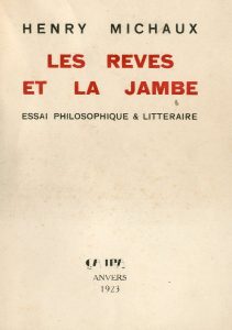 Les Rêves et la Jambe. Essai philosophique et littéraire. Anvers, Ca ira, 1923, in-12, br., non coupé. Edit. orig. du tout premier ouvrage de Michaux. 1/400 ex. num. sur vélin d'édition, seul grand papier (dont une partie du tirage a été détruite). Bel exemplaire.