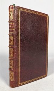 ANACRÉON. Odes, inscriptions, épitaphes, épithalames et fragments. Paris, Didot l'aîné, 1794. Petit in-12, maroquin acajou, triple filet doré sur les plats, dentelle intérieure, dos à nerfs orné, tranches dorées (reliure postérieure). Ornée de 4 figures hors-texte dessinées et gravées par Queverdo et Gaucher, dont 1 en frontispice. Traduction française accompagnée de notes critiques et d'un discours préliminaire par Jean-Baptiste Gail. Bel exemplaire.