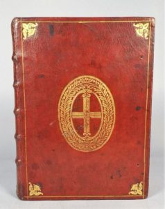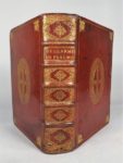 BELLARMIN (Robert). Explanatio in Psalmos. Editio novissima. Lyon, Jérôme de La Garde, 1664. In-4°, maroquin rouge, armes au centre des plats avec motif floral aux angles, dos à nerfs orné (reliure de l'époque). Exemplaire aux armes de la ville de Marseille. Fortes rousseurs sur l'ensemble.