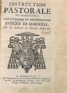 [BELSUNCE (François-Xavier)]. Instruction pastorale de Monseigneur l'Evesque de Marseille sur les libertés de l'église Gallicane. Marseille, J.P. Brebion (1733). In-4° de 141-[13] pages, veau brun, dos à nerfs orné (reliure de l'époque). Edition originale. Rousseurs éparses. (Conlon III, p.265).