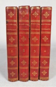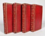 BOSSUET (J.-B.). Discours sur l'histoire universelle… depuis le commencement du monde jusqu'à l'empire de Charlemagne. Paris, Didot l'aîné, 1784. 4 volumes in-18, maroquin vieux rouge, filets dorés sur les plats, dos lisse orné, tranches dorées (reliure de l'époque). Edition tirée à 450 exemplaires sur Johannot. De la Collection des Auteurs Classiques François et Latins, imprimée par ordre du roi pour l'éducation du Dauphin. Exemplaire avec le brevet royal obtenu par Didot, relié au tome I. Petits défauts aux reliures, rares rousseurs.