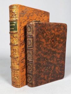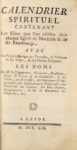 CALENDRIER PERPETUEL contenant les Fêtes que l'on célèbre dans chaque église de Marseille et de ses faubourgs. Leyde, sans nom, 1759. In-12 de 426-[4] pages, basane racinée, dos à nerfs orné (reliure postérieure). Contient un précis historique des paroisses de l'abbaye Saint-Victor et des ordres religieux, ainsi que les noms des dignitaires, curés, directeurs des hôpitaux,.... Bon exemplaire. On joint : Calendrier spirituel et perpétuel pour la ville de Marseille. Marseille, Veuve Henry Brebion, 1713. Petit in-12 de [16]-202-[12] pages, veau brun, dos à nerfs orné (reliure de l'époque). Ensemble 2 volumes.