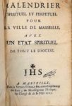 CALENDRIER PERPETUEL contenant les Fêtes que l'on célèbre dans chaque église de Marseille et …