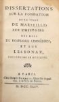 [CARY (Félix)]. Dissertations sur la fondation de la ville de Marseille, sur l'histoire des rois …