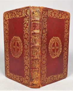 CHAIS (Thomas). L'excellence de la dévotion au St. Scapulaire vulgairement apelle le Petit Habit de N. Dame du Mont-Carmel. Marseille Veuve Brebion, 1752. In-12 de [14]-196 pages, maroquin rouge, dentelle dorée d'encadrement, armes sur les plats, tranches dorée (reliure de l'époque). Exemplaire aux armes de la ville de Marseille. Illustré d'un petit bois naïf titré DECOR.CARMELI. Accidents à la reliure.
