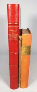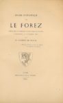 CHARPIN-FEUGEROLLES (Cte de). Cartulaires des francs-fiefs du Forez 1090-1292. Lyon, Perrin, 1882. In-folio, demi-maroquin rouge à coins, dos à nerfs, tête dorée, couv. (Thierry, sr de Petit-Simier). Edition publiée d'apres le document original conservé aux Archives Nationales. On joint : ONOFRIO (J.-B.). Essai d'un glossaire des patois de Lyonnais, Forez et Beaujolais. Lyon, Scheuring, 1864. In-8, demi-percaline bradel rouge de l'époque. Défauts au dos. On joint : MEAUX (Vicomte de). Etude historique sur le Forez présentée au Congrès scientifique de France à Saint-Etienne le 12 septembre 1862. Lyon, Perrin, 1862. In-8 broché. Tiré à 300 exemplaires. Etude historique destinée aux instituteurs de toutes les communes de la Loire. Défauts. Ensemble 3 volumes.