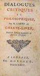 CHARTE-LIVRY (abbé de) (pseud. de J-F. Bernard). Dialogues critiques et philosophiques. Londres, …