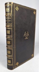 CHEVALIER (Casimir). Histoire abrégée de Chenonceau. Lyon, Perrin et Marinet, 1879. In-8, maroquin bleu nuit, triple filet doré sur les plats avec le chiffre HD aux angles, emblème de Diane au centre, dentelle intérieure, dos orné du même chiffre, tranches dorées (H. Lefèvre). Seconde édition. Quelques frottis, sinon bon exemplaire aux chiffres de Diane de Poitiers et Henri II, et du symbole de Chenonceau.