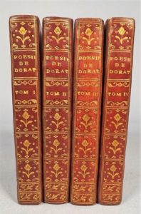 DORAT. Poésies. Genève, s.n. (Cazin), 1777. 4 volumes in-16, maroquin rouge, filets dorés sur …