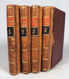[DU LAURENS (Abbé Henri-Joseph)]. Le Compère Mathieu, ou Les Bigarrures de l'esprit humain. Malthe, aux dépens du Grand-Maitre, 1793. 4 volumes in-12, demi-basane mouchetée, dos lisses, étui (reliure de l'époque). Célèbre roman licencieux attribué à Voltaire et condamné 3 fois à la destruction. Nouvelle édition illustrée de 12 figures hors-texte non signées. Provenance : Bibliothèque de Marly, Victorien Sardou (ex-libris gravé).