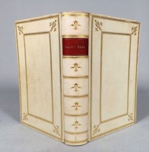 ESOTERISME. [LAPERLIER (Laurent). Recueil de 6 ouvrages. In-8, velin ivoire, double encadrement de filets et fleurons dorés sur les plats, dentelle intérieure, dos lisse orné, tranches dorées (Gruel). Ouvrages spirites dictés par Saint Eloi au médium Laurent Laperlier connu sous le nom de Sebron (Dorbon, 2483 - Caillet III, 1078-82). I. Enseignement spirites et moraux. Saint Eloi aux auditeurs de ses premières paroles. La médiumnité à l'oeuvre selon Saint Eloi. Paris, Didot, 1859. II. Dix prières de dix Saints. (Paris), Ledoyen, s.d. III. Manifestation de Saint Eloi donné en Dieu. Paris, Ledoyen, s.d. IV. Explications, semonces, récits et morales. (Paris), Ledoyen, s.d. V. Dix prières de dix Saintes. (Paris), Ledoyen, s.d. VI. Le médium aimé de Dieu. (Paris), Ledoyen, s.d. Rousseurs sinon très bon exemplaire joliment relié par Gruel.