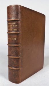 FLECHIER. Oraisons funèbres. Paris, Plon, 1878. Petit in-12 carré, maroquin châtaigne, large dentelle intérieure, dos à nerfs, tr. dorées (David). De la collection « des Classiques François du Prince Impérial », imprimée de 1861 à 1881. Tirage à 300 exemplaires, celui-ci n° 55. (Vicaire II, 531). Provenance : Bibliothèque P. R. Mery (Ex-libris avec la devise : Information Publicité Propagande).