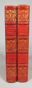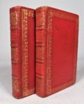 GOLDSMITH. Letters from a citizen of the world to his friends in the east. Whittingham, Chiswick, 1819. 2 volumes petit in-12, maroquin cerise, dentelle dorée encadrant les plats, dos à nerfs ornés, tranches dorées (reliure de l'époque). Chaque titre est orné d'une vignette. Tampon et ex-libris manuscrit.