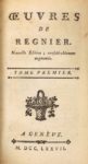 REGNIER. OEuvres. Genève, s.n. (Cazin), 1777. 2 volumes in-18, maroquin vieux rouge, large …