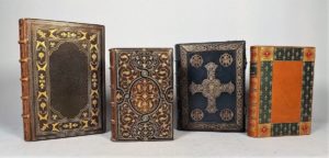 (Reliures). 4 volumes reliés en maroquin avec divers décors, tranches dorées. AICARD (Jean). Jésus. P., Flammarion, 1896 - La prière selon Sainte-Thérèse. P., Palmé, 1867 (A. Bertrand, relieur) - Paroissien romain, d'après les imprimés français du XV siècle. P., Gruel, 1858 (avec fermoirs) - Manuel de piété à l'usage des élèves du sacré-coeur. P., Lecoffre, 1897 (Gouasse-Lebel et Massin, relieur).