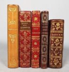 (Reliures). 5 volumes reliés en maroquin avec divers décors, tranches dorées. Nouvelles heures …
