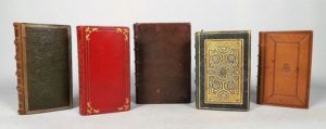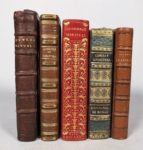 (Reliures). 5 volumes reliés en maroquin avec divers décors, tranches dorées. SCUPOLI. Le combat spirituel. P., Carié, 1826 (Lacoste, relieur) - ANDELARRE. Heures choisies. Chatillon-sur-Seine, Cornillac, s.d. (Gruel, relieur) - SCUPOLI. Le combat spirituel. P., Despilly, 1773 - La journée du chretien, P., Bouasse-Lebel, s.d. - DUVAL. Nouvelles heures gravées au burin. P., Mariette, s.d.