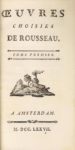 ROUSSEAU (Jean-Baptiste). OEuvres choisies. Amsterdam, s.n. (Cazin), 1777. 2 volumes in-16, veau fauve, filets dorés sur les plats, dos lisse orné, tranches dorées (reliure de l'époque). Portrait de Rousseau gravé par de Launay, d'après Pinxit.