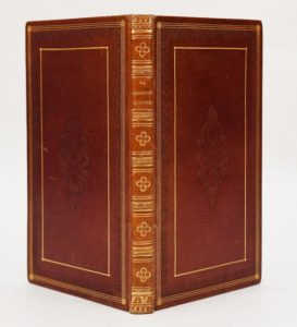 SAINT-PIERRE (Jacques-Henri Bernardin de). La chaumière indienne. Paris, Méquignon Marvis, 1822. In-18, maroquin acajou, plats ornés d'un fleuron à froid au centre et d'encadrements de filets dorées et guirlandes à froid, dos à nerfs orné, tranches dorées (Thouvenin). Charmant petit conte indien destiné à augmenter la relation d'un voyage en Ile-de-France (aujourd'hui l'île Maurice) publié en 1773, et qui renferme selon l'auteur « plus de vérités que bien des histoires ». Rares rousseurs. Bel exemplaire finement relié par Joseph Thouvenin (1790-1834). (Vicaire VII, 80). Provenances : Etiquette du Palais Royal, exemplaire de la librairie de Dolibon, galerie de Nemours - Signature manuscrite Henri Coppin.