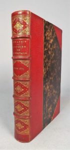 SÉRAPHIN. Histoire de ce spectacle depuis son origine jusqu'à sa disparition. 1776-1870. Lyon, Scheuring, 1875. In-8, demi maroquin cerise à coins, dos à nerfs finement orné, tête dorée (Hardy). Edition originale ornée d'un portrait de l'auteur. Ouvrage de référence sur le spectacle d'ombres chinoises, chaque pièce est illustrée d'une vignette gravée en taille-douce. Exemplaire n°1 sur vergé. Quelques rousseurs, sinon bel exemplaire. Provenance : Bibliothèque du docteur Felix Durosier (ex-libris gravé).