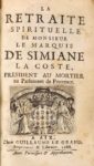 SIMIANE DE LA COSTE (Marquis de). La retraite spirituelle de monsieur le marquis de Simiane de la …