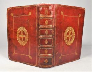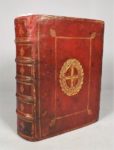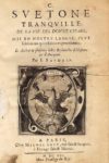SUETONE. De la vie des douze Césars, mis en nostre langue, plus fidèlement qu'es Editions précédentes et illustré de plusieurs belles recherches d'Histoire et d'Antiquité. Paris, Michel Soly, 1621. In-4°, maroquin rouge, armes au centre des plats avec encadrement doré, dos à nerfs orné (reliure de l'époque). Edition procurée par J. Baudoin. Chaque vie est illustrée d'un portrait de l'empereur gravé à l'eau-forte par Picquet. Plusieurs feuillets restaurés, frottis à la reliure. Exemplaire aux armes de la ville de Marseille.