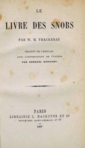 THACKERAY (William Makepeace). Le Livre des Snobs. Paris, Hachette, 1867. In-8, demi-chagrin …