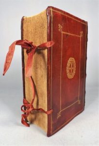 TITE-LIVE. Romanae Historiae. Lyon, Thomas Soubron, 1620. Fort volume in-4°, maroquin rouge, armes au centre des plats avec encadrements dorés, cordons (reliure de l'époque). Exemplaire aux armes de la ville de Marseille. Haut et bas du dos restaurés, rousseurs éparses.
