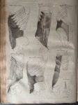 ALBINUS (Bernhard Siegfried). Tables of the skeleton and muscles of the human body. Edinburgh, printed for Andrew Bell engraver, 1777-1778. Deux parties en un volume in-folio, [1] f. (titre), IV-32 p., 26 pl. ; [1] f. (titre), p. [31]-86, 15 pl., demi-basane havane marbrée ancienne, dos à 7 nerfs, trace de pièce de titre (dos épid., coins émoussés ; qq. rousseurs et transferts des figures, qq. surlignages au crayon rouge). Troisième édition, et seconde édition en anglais, de ce célèbre recueil, aussi spectaculaire que scientifiquement précis. Les planches ont été regravées pour l'occasion, réduites et débarrassées des ornements des précédentes éditions, soulignant ainsi l'aspect technique du propos. L'ouvrage contient 41 planches gravées par Andrew Bell décomposées comme suit : dans la première partie, numérotées I à III + I à X, elles sont en double puisque le squelette est d'abord présenté dessiné avec les détails et ombres du squelette et des tissus puis simplifié par une ligne pour être légendé ; dans la seconde partie, numérotées de XI à XXV, elles sont à la fois ombrées et légendées. Grande vignette de titre gravée sur cuivre répétée. Intéressant exemplaire, dont toute la seconde partie est enrichie de nombreux commentaires manuscrits en français, probablement rédigés au XIXe s. (papier vergé filigrané « Henry ») sur plusieurs feuillets montés sur onglets pour laisser l'accès au texte original. Annotations manuscrites anciennes sur une garde, à propos de l'auteur ; petite figure dessinée à l'encre au bord de la pl.XI 2e partie. Provenance : Georges François Symon de Carneville (1750-1837), militaire d'origine normande (ex-libris manuscrit sur une garde) ; Dr. François Moutier (ex-libris gravé XXe s.). (Garrison & Morton 399 ; Waller 339 ; Wellcome II, 26).