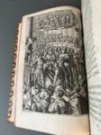 APULEE. Les métamorphoses ou L'Asne d'or de L. Apulee philosophe platonique. Oeuvre d'excellente invention et singulière doctrine. A Paris, chez Samuel Thiboust, 1623. Deux tomes en 1 fort vol. in-8, [20] f. (frontispice, épître dédicatoire à Jean de Rouen seigneur de Heunières, vie de l'Apulée, préface, privilège), 525 p., 352 p. (Commentaire), maroquin rouge XVIIIe s., dos lisse, titre et date dorés, filet d'encadrement à froid aux plats, roulette intérieure, tranches dorées (tache en queue du dos et du plat sup., coiffe de tête frottée). La plus belle édition de la traduction donnée par Jean de Montlyard, illustrée d'un titre-frontispice, et de 15 figures à pleine page gravées en taille-douce, dont cinq par Crispin de Passe et dix par Isaac Briot, le tout en premier tirage. Élégant exemplaire passé par des bibliothèques de qualité : Antoine-Augustin Renouard (cat., 1854, n°1913, ex-libris), baron Roger Portalis (cat.1878, ex-libris), Roger Paillet (cat. particulier Bibliothèque d'un bibliophile rédigé par Henri Beraldi, 1885, n°65 ; signature sur une garde). Signature ancienne en pied du titre.