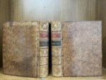 ARISTOTE. Histoire des animaux. A Paris, chez la Veuve Desaint, 1783. 2 vol. in-4, [4] f., LVI-758 p., [1] f. + [2] f., XLVIII-362 p., [2] f., veau havane moucheté époque, dos à 5 nerfs, pièce de titre rouge, pièce de tomaison vert, chardons, caissons ornés aux petits fers et chardons en fleurons, roulette dorée aux coupes, tranches rouges (un coin émoussé ; petite mouillure en marge de tête aux premiers et derniers f. du t.1). Édition originale de la traduction française d'Armand-Gaston Camus, accompagnée du texte grec, imprimé en regard. Exemplaire grand de marges.