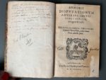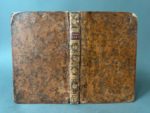 [Livre du XVIe s.]. ARNOBE. Disputationum adversus gentes libri septem, recogniti & aucti... Antverpiae, ex off. C. Plantin, 1582. In-8, 285 p. [sign. A-R 8, S7 (sur 8)], veau havane moucheté XVIIIe s., dos lisse orné, pièce de titre rouge, roulette dorée aux coupes, tranches jaspées (coins usés, coiffes découvertes, mors fendus ; mouillure étendue en début de volume, taches sur A2 et A3, puis brunissure s'atténuant ; piq. de vers en marge). Édition estimée issue des presses de Plantin, établie par l'érudit néerlandais Dirk Canter, ou Theodorus Canterus (1545-1617). Sans le dernier f. S8 (probablement blanc). Signatures anciennes au titre, une garde annotée (USTC 415454 ; Voet, Plantin Press, 596 ; Adams A1996).