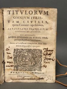BRANT (Sebastian). Titulorum omnium iuris tam ciuilis quam canonici expositiones... His accessit …
