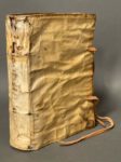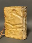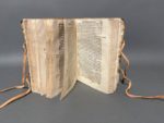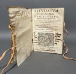 BRANT (Sebastian). Titulorum omnium iuris tam ciuilis quam canonici expositiones... His accessit Modus studendi in vtroque iure per Ioan. Baptistam Caccialupum... Venetiis, apud. C. Gallinam, 1617. In-8, 255-[17] f., velin ivoire souple époque, dos lisse, titre à l'encre, lacets modernes (dos éclairci avec lac. de couvrure en tête, plats froissés, garde sup. découpée, mouillure au titre et 2 1ers cahiers, accroc p. 33 sans mq., coin mq. en marge p. 120, trav. de vers dans les marges int. des cahiers N & O ; date falsifiée au titre). Nouvelle édition de cet ouvrage juridique composé par Sebastian Brant, juriste et homme de lettres humaniste, auteur de la célèbre « Nef des fous ». Deux ex-libris ms. anciens au titre dont un biffé. (OPAC SBN, UTOE675600, 2 exemplaires localisés).