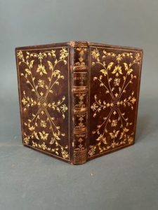 CAYLUS (Marthe-Marguerite Le Valois de Villette de Murçay de). Les souvenirs de Madame de Caylus. Amsterdam, chez Marc-Michel Rey, 1770. Petit in-8, [2] f., 252 p., [3] f., basane havane XIXe s., dos à 5 nerfs, titre doré, caissons et plats décorés de compositions de petits fers floraux et aux oiseaux, roulette dorée aux coupes (mors frottés, rousseurs).