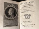 CAYLUS (Anne Claude Philippe de). OEuvres badines complettes du comte de Caylus, avec figures. A Amsterdam, et se trouve à Paris, chez Visse, 1787. 12 volumes in-8, cartonnage bleu lég. post., pièces de titre rouge, roulettes et filets dorés aux dos, tranches rouges (qq. rousseurs aux planches). Édition illustrée d'un portrait gravé par Delaunay jeune d'après Cochin, et de 24 planches gravées d'après Marillier. (Cohen, 211).