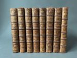 CORNEILLE (Pierre). Théâtre... avec des commentaires, et autres morceaux intéressans. Nouvelle édition, augmentée. Genève, s.n., 1774. 8 volumes in-4, basane marbrée époque, dos à 5 nerfs, pièces de titre et de tomaison fauve, caissons ornés, triple filet doré bordant les plats, tranches jaspées (défauts dont des coiffes découvertes, fentes partielles de certains mors ; brunissures sporadiques). Importante édition commentée par Voltaire, publiée à Berlin chez Rottman sous la fausse adresse de Genève. Le texte est orné d'un encadrement répété à chaque page. L'illustration se compose d'un frontispice allégorique gravé par Watelet d'après Pierre, et de 34 planches gravées d'après Gravelot. (Bengesco, 1700 ; Cohen, 255-256).