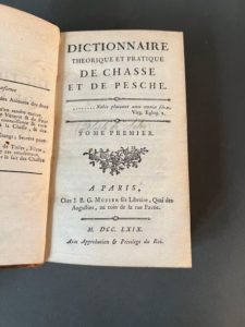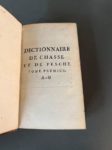 [Chasse ; Pêche] [DELISLE de SALES (Jean-Baptiste Claude Isouard dit)]. Dictionnaire théorique et pratique de chasse et de pêche. A Paris, chez J. B. G. Musier fils, 1769. Deux tomes en 1 fort volume in-8, [2] f., LX-475 p. ; [2] f., 512 p., [1] f. blanc, basane fauve racinée époque, dos lisse à décor de croisillons, pièce de titre rouge renouvelée, roulette dorée aux coupes (frott., coiffe de tête découverte, mors sup. fendu en tête). L'ouvrage traite de vénerie et fauconnerie, du soin des chevaux, chiens, oiseaux de proie propres à la chasse, de la manière d'empoissonner les étangs et des secrets de la pêche, de la manière de faire toiles, filets, engins, etc. Provenance : comte Frédéric de Pourtalès, aide de camp du maréchal Berthier (ex-libris armorié gravé). (Thiebaud, 260).