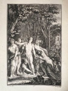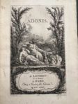 [FRÉRON ; COLBERT]. Adonis, poeme en prose. Londres, Paris, Musier, 1775. In-8°, [1] f. (titre gravé, 54 p., demi-veau fauve à coins XIXe s., dos à cinq nerfs, pièce de titre, tête dorée (accroc à la coiffe sup., front. un peu défraîchi avec auréole en marge). Illustré d'après Eisen d'un titre-frontispice, d'une figure, d'une vignette & d'un cul-de-lampe, gravés par Ponce. (Cohen, 412).