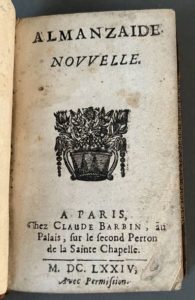 [LA ROCHE-GUILHEM (Anne de)]. Almanzaide, nouvelle. A Paris, chez C. Barbin, 1674. In-12, [2] f., …