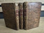 LE SAGE (Alain-René). Le diable boîteux [Suivi de] Entretiens sérieux et comiques des cheminées de Madrid [Suivi de] Les béquilles du diable boiteux [Suivi de] Une journée des Parques. A Paris, chez Damonneville 1756. 3 vol. in-12 en pagination continue, XII-264 p. + [1] f., 265-360 p. puis p.1-224 + [2] f. p. 225-472, veau havane raciné époque, dos lisse, pièces de titre et tomaison rouges, fleurons dorés, filet d'encadrement à froid aux plats, filet doré aux coupes, tranches rouges (frott., coins émoussés ; dech. sans manque p. 113-114, rouss. claires). Nouvelle édition corrigée et augmentée d'Une journée des Parques. Provenance : ex-libris manuscrit Louise de Marly.