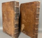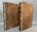 [Livre du XVIe s.]. MARC (François). Decisiones aureae, in sacro Delphinatus senatu jampridem discussae, ac promulgatae... Cum indice... Lugduni, s.n. [Compagnie des Libraires], 1585. 2 volumes in-folio, [2] f., 638 p., [1] f. blanc + [1] f., 423 p., [66] f., basane havane XVIIe s., dos à 6 nerfs, titre et tomaison dorés, tranches jaspées (défauts dont 3 coiffes découvertes, épidermures, des coins usés ; premier titre frotté et doublé, mouillures étendues soutenues, qq. lettres de l'index affectées ; travaux de vers en tête du tome 2 touchant qq. lettres). Edition publiée par la Compagnie des libraires active à Lyon de 1560 jusqu'à vers 1588. En font notamment partie en 1579 : Antoine de La Porte, Barthélemy I Vincent, les héritiers de Claude Senneton, Sibille de La Porte, veuve d'Henri de Gabiano, Marie de Rochefort, veuve de Barthélemy de Gabiano, et Jean-Baptiste Regnault.