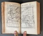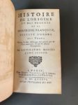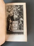 MARCEL (Guillaume). Histoire de l'origine et des progrez de la monarchie françoise suivant l'ordre des temps... A Paris, chez D. Thierry, 1686. 4 volumes in-12, veau fauve époque, dos à 5 nerfs, pièces de titre et de tomaison grenat, caissons ornés, tranches jaspées (qq. défauts dont 2 coiffes découvertes, taches d'encre sur la tranche et en marge des derniers f. au t.4). Edition originale de cet ouvrage composé par G. Marcel (1647-1708), avocat au Parlement, géographe et chronologiste. Elle est illustrée de 4 frontispice, de vignettes et figures (dont 2 cartes dont une hors-texte et une planche dépliante), le tout gravé sur cuivre. Provenance : Théodore-Démétrius Bauffremont, prince de Courtenay (1793-1853, ex-libris armorié).