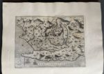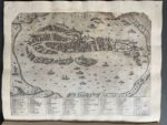 [Atlas]. PINARGENTI (Simon). Isole, che son da Venetia nella Dalmatia, et per tutto l'arcipelago, fino a Costantinopoli, con le loro Fortezze, e con le terre più notabili di Dalmatia ; nuovamente poste in disegno a beneficio de gli studiosi di geografia. In Vinegia, appresso Simon Pinargenti, et compagni 1573. Album remonté et lavé in-4, demi-percaline havane à coins moderne, dos lisse muet (frott., mors fendus, coiffes arasées ; mouillures, brunissures, qq. petites taches, qq. trav. de vers avec manque, accidents, restaurations et manques). Titre gravé, 1 f. de texte et 51 [sur 52] vues gravées. Les cartes sont coupées à la cuvette et collées sur papier vergé. Rare ensemble. On ne sait presque rien de Simone Pinargenti éditeur et graveur de cartes, il tenait boutique à Venise dans la seconde moitié du 16e siècle en association avec Michele Tramezzino. Il est connu pour avoir produit ces cartes dont les quelques exemplaires que l'on rencontre présentent des contenus variés. Collation sur l'exemplaire de la Bnf, complet en 52 vues (ark:/12148/cb40743824f) : [1] Venetia (manques) ; [2] Arcipelago ; [3] Cita di Ragusi, Castel Novo, citta di Cataro ; [4] Dulcigno... ; [5] Curzola ; [6] Antiveri... ; [7] Istria... ; [8] Il disegno dela provintia di Albania, novamente ristampato ; [9] Durazzo... ; [10] Valona ; [13] Corfu 1570 (trav. de vers) ; [14] La cita di Lepanto posta nella provincia di Achaia co[n] il suo golfo, & la cita di Patrasso posto nella Morea al p[rese]nte possedutta da infid[e]li (Simon P.) (trav. de vers) ; [15] Morea... ; [16] S. Maura co[n] il golfo della Preveza posti nella provintia di Achaia, possedutto da Infid[e]li et orà ochup.a da l'armata d[el]la s[an]ta lega chr[istian]a 1571 ; [17] Zafalonia ; [18] Zante ; [19] La vera copia et dissegno del sitto di Modone & Navarino... ; [20] Cita de Modone ((S. Pinargenti) ; [21] Brazzo de Maina... ; [22] Il vero disegno di Napoli de Romania posto nella Morea al presente posseduto da infideli ; [23] Isola de Cerigo ; [24] Negro Ponte ; [25] Negroponte ; [26] Insula de Nicsia ; [27] Sicilia insula ; [28] Scarpanto insula ; [29] Isola de Scio ; [30] Insula de Samo ; [31] Insula d[e] Tenedo ; [32] Insula de Metileme ; [33] Isola de Rhodi ; [34] Rodi citta ; [35] Costantinopoli ; [36] Scutari ; [37] Zara et contado citta principale della Dalmatia posta Adriatico loco delli Ill.mi S.ri Venetiani al presente molestata da Turchi ; [38] Sebenico et contado citta nella Dalmatia confinante con Zara d[e]lli Ill.mi S. V.ni al p[resen]te da Turchi molestado 1571 ; [39] Sebenicco ; [40] Sebenico ; [41] Liesena insula della Dalmatia... ; [42] Nicosia ; [43] Fortezza di Soppoto... ; [44] Tine ; [45] Palmosa ; [46] Cita de Trau in Dalmacia ; [47] Spalato... ; [48] Clissa fortezza ; [49] Candia ; [50] Cipro ; [51] Famagosta ; [52] Europa ; Africa (2 petites cartes) ; [12] La gra forteza de Corfu. Il manque la vue [11] Malgaritin.