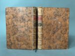 POLIGNAC (Melchior de). L'anti-Lucrèce, poëme sur la religion naturelle... Traduit par M. de Bougainville... A Paris, chez Desaint & Saillant, 1749. 2 volumes in-8, [6] f., LXXXV-229 p., [1] f. + [2] f., 338 p., fr., veau havane moucheté époque, dos à 5 nerfs, pièces de titre et de tomaison rouges et vertes, caissons ornés, filets dorés aux coupes, roulette intérieures, tranches rouges (qq. défauts mineurs dont coiffes de tête et coins émoussés ; légères bruniss., tache très claire au front. et en marge du titre). Édition illustrée en frontispice d'un portrait du cardinal de Polignac gravé par J. Daulé d'après Hyacinthe Rigaud, et de 10 vignettes et 5 culs-de-lampe d'après Eisen gravés par Delafosse et Tardieu. (Cohen 812).
