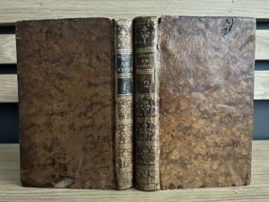 [Franc-maçonnerie]. RAMSAY (Andrew). A new cyropaedia, or The travels of Cyrus, with a discourse on the theology & mythology of the Ancients = Les voyages de Cyrus, françois et anglois. Rouen, printed for P. Machuel, 1779. 2 vol. in-12, basane havane mouchetée époque, dos lisse orné, pièces de titre et de tomaison (de coul. différentes pour chaque vol.), tranches marbrées (coiffes de tête usées, un mors fendu sur qq. cm., coins un peu émoussés, trav. de vers au coin d'un plat, petite auréole marginale, qq. rouss., f. de garde détaché). Nouvelle édition revue et corrigée de ce roman philosophique et initiatique, par Andrew Ramsay (1693-1743), écrivain écossais qui rédigea l'un des textes fondateurs de la franç-maçonnerie au XVIIIe siècle. Texte bilingue français et anglais. Provenance : Rosset, prêtre (étiq. ex-libris XIXe s.). Voir les lots 339, 340 et 341 de la vente du 14 septembre 2023.