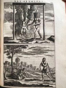 ROGER (Abraham). Le théâtre de l'idolatrie, ou La porte ouverte, pour parvenir à la cognoissance du paganisme caché, et la vraye représentation de la vie, des moeurs, de la religion, & du service divin des Bramines, qui demeurent sur les costes de Chormandel, & aux pays circonvoisins... A Amsterdam, chez Jean Schipper, 1670. In-4, front., [7] f., 371 p., [2] f., basane brune époque, dos à 5 nerfs, pièce de titre greant, caissons ornés, tranches rouges (rel. frottée, dos dédoré, coins émoussés ; mouillure en marge des 1ers f. dont le front., brunissures ordinaires). Première traduction en français, donnée par le médecin, grammairien et linguiste Thomas Lagrue (1620-1680), de cet ouvrage curieux qui décrit les doctrines religieuses, cérémonies et rites pénitentiels des peuples de la côte de Coromandel. On trouve en fin de volume les Proverbes de Barthrovherri sur le chemin qui conduit au ciel et sur la conduite raisonnable, ainsi qu'un extrait de La Chine illustrée d'Athanase Kircher. L'illustration gravée sur cuivre se compose d'un frontispice et de 7 vignettes à mi-page. Sans la planche dépliante.